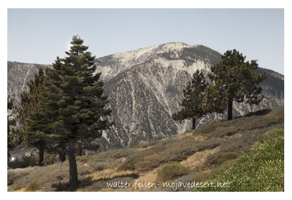 Pinon pineconesMission LifeThe Spanish in conquering California subjugated these people and took them to the Mission Asistentia in San Bernardino (1819). They taught them in regularly conducted classes in mission schools, but also to the more challenging standards of a European education as one may have found in the seminaries and schools of Spain. In teaching them Spanish and communication skills they were found to be intelligent and reasonable. The Padres in return, benefited from the Serrano knowledge of survival in an unsettled land.Independence and AbandonmentSpain relinquished California to newly independent Mexico, and in 1834, the state secularized all church lands. The Mission was ultimately abandoned. When the sons of Don Antonio Lugo came to the area in 1839 to begin working the Rancho San Bernardino grant, all but a few of the Indians remained at the Asistentia. In 1862 and 1873, smallpox epidemics ravaged the Indian population and those few who survived found themselves with few options other than working for the ranchers who took up residence in the area.ReservationThe San Manuel Reservation was established in 1891. By this time, only a few hundred Serrano people remained. They were recognized as a sovereign nation, with the right to be governed by themselves. The reservation is named after Santos Manuel, a great tribal leader and is located in the foothills of the San Bernardino Mountains, just north of the city of Highland. It is 740 acres of mostly mountainous land.The Mormon ColonyIn 1849, Captain Jefferson Hunt, of the Mormon Battalion, led a group of settlers into San Bernardino. The Mormon Road stretched from Salt Lake across the Mojave Desert and down through the Cajon Pass. At the ridge along the summit of the pass they would dismantle their wagons, lower them to the valley floor, reassemble them and make camp at the formations known as the Mormon Rocks.In 1851 the Mormon Colony purchased the Rancho from the Lugos. Two of these Mormons, Nathan and Truman Swarthout, homesteaded in Lone Pine Canyon. Eventually they extended their holdings to include the valley that now bears their name. The Swarthouts abandoned thier holdings when the Mormons returned to Salt Lake City in 1857. Ranchers and Miners![]() Clyde Ranch - Lone Pine Canyon Almon Clyde filed a patent on the Lone Pine Canyon area in 1883 where he established a cattle ranch. The orchard that he developed adjacent to his ranch is still owned and operated by the Clyde family. Some of the original buildings can be seen from Lone Pine Canyon Road. It is said that at the top of this canyon is where the last grizzly bear in southern California was killed. ![]() Slover Canyon Charles "Tom" Vincent discovered the Bighorn Mine, the most spectacular of the San Gabriel mountain gold mines in 1895 on the precipitous eastern slope of Mt Baden-Powell. ![]() Mt. Baden-Powell Settling the Swarthout Valley![]() The Swarthout Valley as seen from Circle Mountain summit Between 1886 and 1926, the Swarthout Valley was homesteaded by many men, among them Harry Heath, Earl Schuyler, Sumner and Buford Wright. The Wrights eventually obtained two thirds of the valley, and it is, of course, from their name that Wrightwood got its name. They established the 1,000 head Circle Mountain Ranch at the eastern end of the valley, and an apple orchard the trees of which can still be found among the homes on the Mountain View and Apple Streets. A few of the buildings in the village area date back to the ranch days. This period also saw mining and lumbering come to the area. ![]() The Red Gate Lodge Sumner Wright came to the area in the late 1800's. Originally from the Colton, California area, Mr. Wright acquired land in the area for the development of a cattle ranch. He operated his family ranch, Circle Mountain Cattle Company during the early 1900's. He was responsible for planting many of the original apple trees in the area. The Wright's apple production shipped apples from over 3,000 trees. The Wright's also raised pedigreed cattle and trotting horses. ![]() Wrightwood apples The Great Hiking Era![]() Big Pines visitor center (Swarthout Lodge) In 1923, Los Angeles county established a major recreational facility at Big Pines. Many of the buildings still stand (most notably one of the two stone towers that once supported a pedestrian overpass across Highway 2, west of Wrightwood). Now administered by the U.S. Forest Service, Big Pines continues to be a popular recreation area encompassing three ski resorts, several campgrounds and Jackson Lake. ![]() Jackson Lake In 1926, the Smithsonian Institute opened a facility on Table Mountain to conduct solar research. Thirty-five years later the Jet Propulsion Lab opened the facility under contract by N.A.S.A. Wrightwood, the Resort CommunityThe mountain resort developed as a result of a down swing in the cattle industry. The family began to sell off parcels as a small subdivision for summer resort residences. The Acorn Lodge was built in 1926 by William Bristol. Bristol was himself a pioneer rancher, inventor, poet and a builder. The lodge was built entirely of materials native to the area.